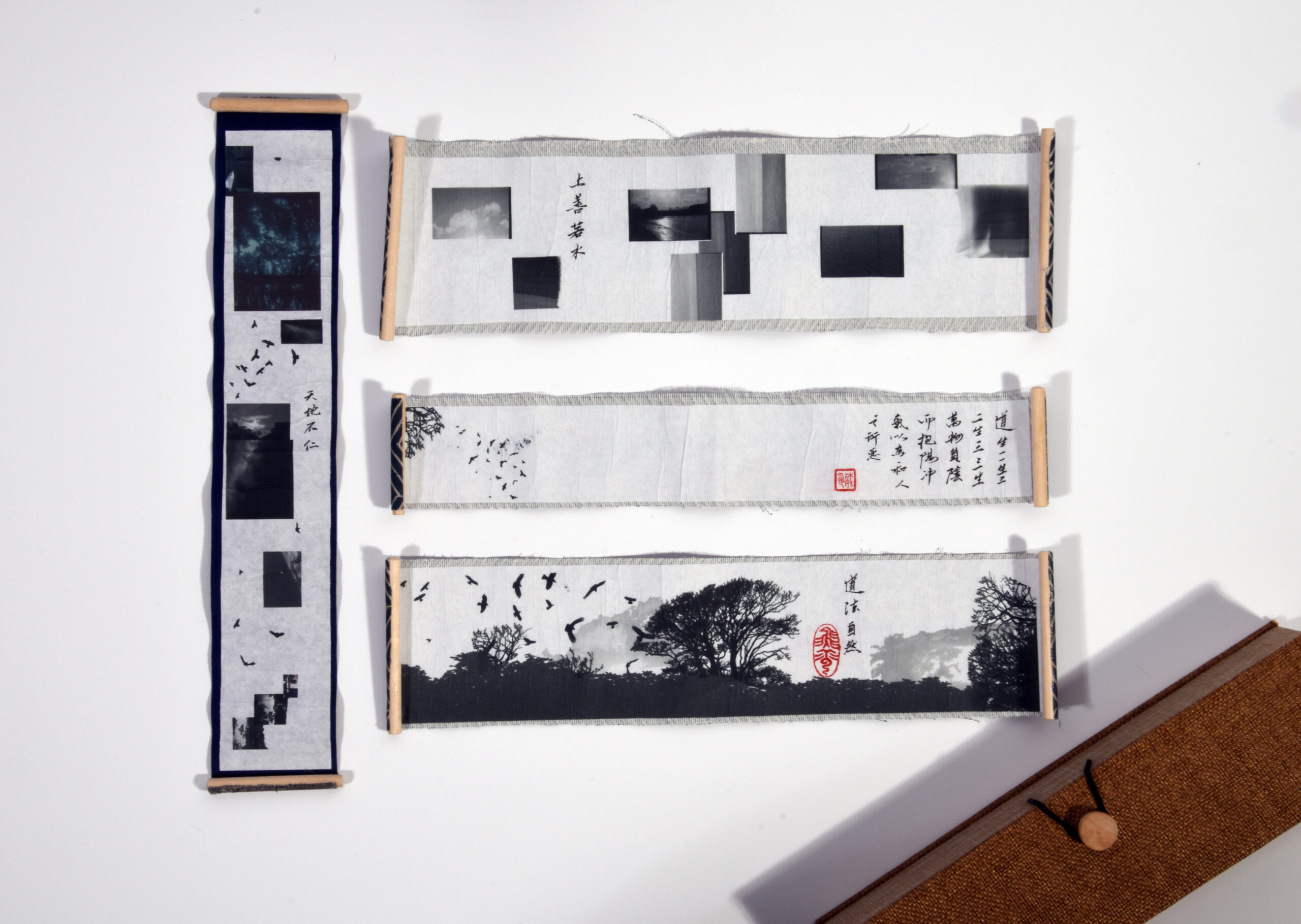 My work is making photographs look like traditional Chinese scrolls combined with calligraphy. At first, I did not think there would be any other Chinese artists or photographers doing things like me, because most of them, of course including me, we are influenced by western or Japanese photography concepts and young artist like modern art more. I am really happy with it, which means there are many young artists in China still loving traditional art.