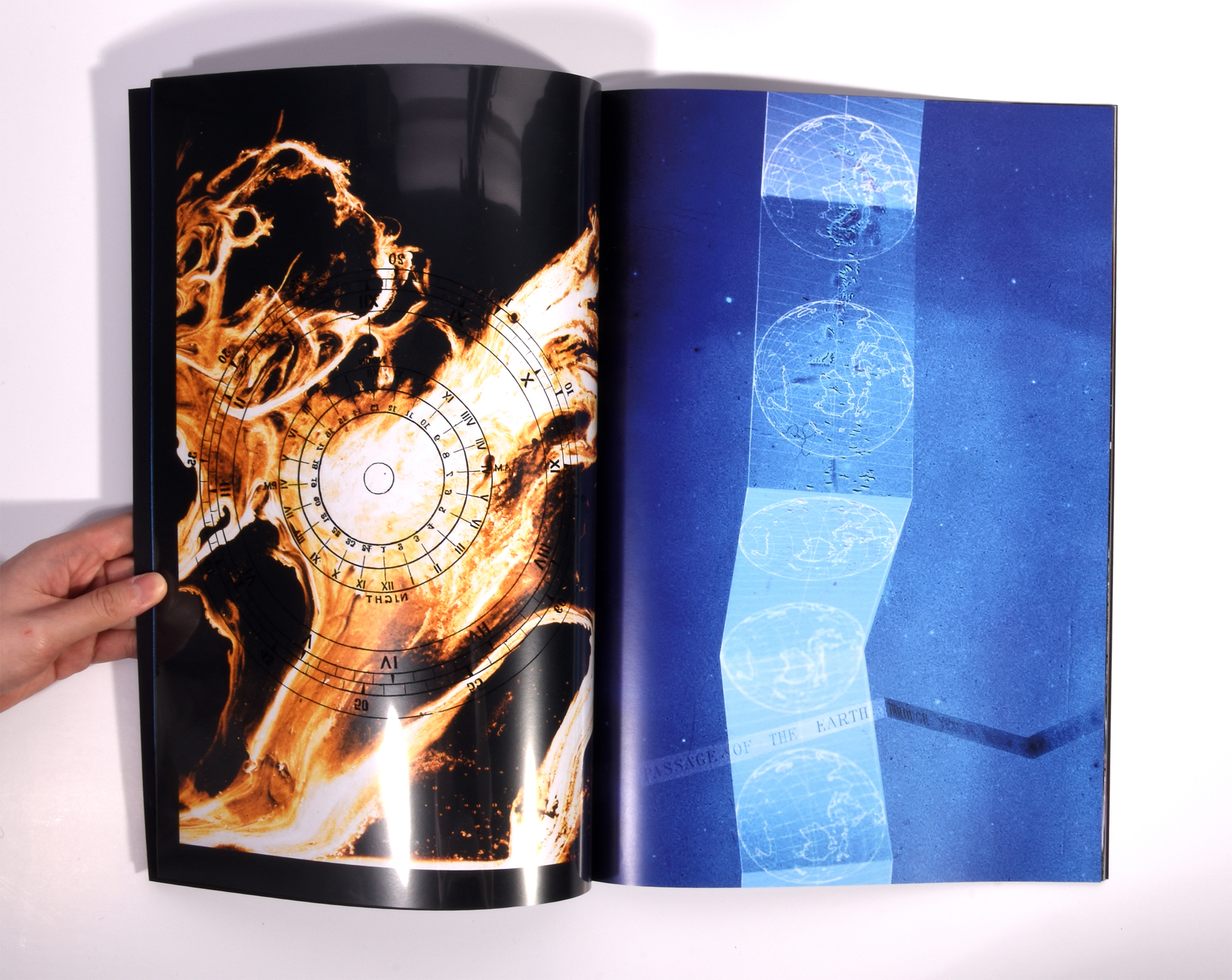 I used three astronomy books as source material, including A handbook of descriptive and practical astronomy, combining illustrations of measuring scales and devices with my mostly abstract photographic work.